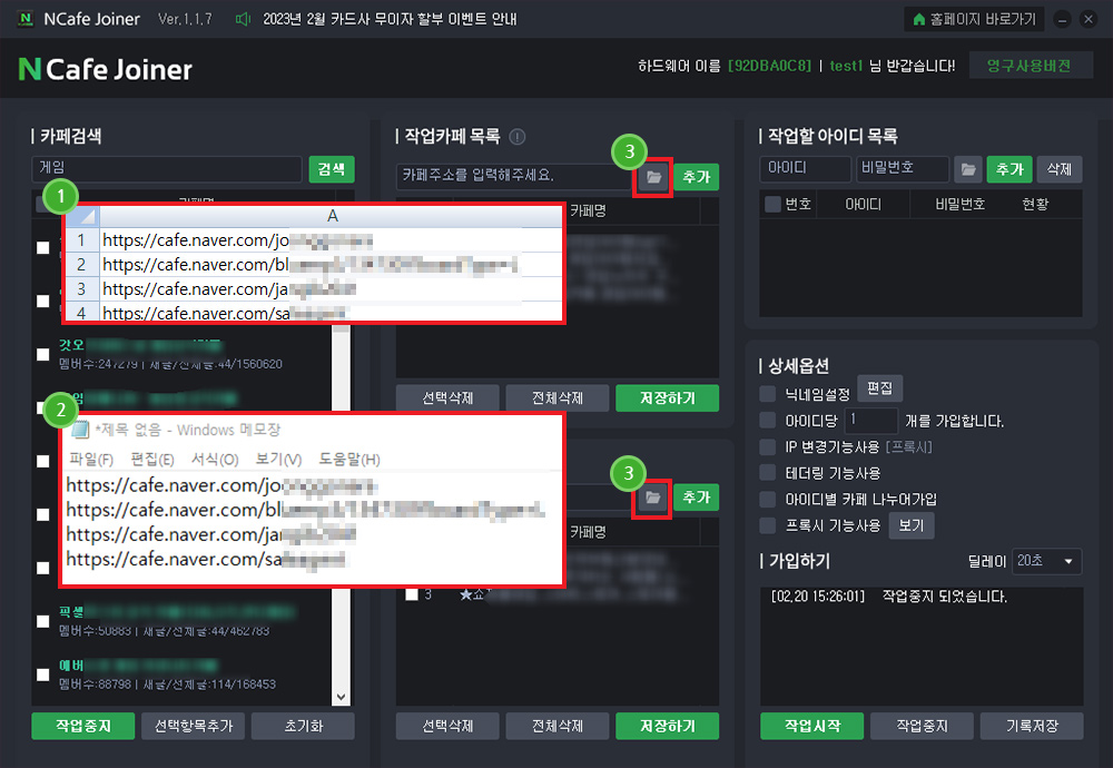 복수의 카페에서 다수의 계정으로 카페 가입 후 반복적인 활동을 진행하셔야 하는 분들